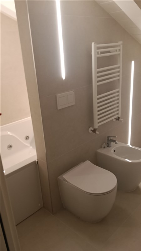 In contesto signorile, di sole due unità abitative, di nuova realizzazione, in zona residenziale in prossimità del Centro Storico, disponiamo al piano primo appartamento su due livelli; l'immobile si sviluppa con ingresso indipendente sulla zona giorno di 50 mq circa, con possibilità di creare la cucina abitabile, servita da due terrazzi abitabili di complessivi 50 mq circa, bagno e camera matrimoniale al piano, oltre ad un ripostiglio; accedi al secondo piano, tramite scala interna, che si sviluppa con la suite padronale composta da stanza armadi e bagno con vetrata con vasca a vista, camera matrimoniale, cabina armadio e bagno. Il piano sottotetto presenta travi a vista e altezza generose.